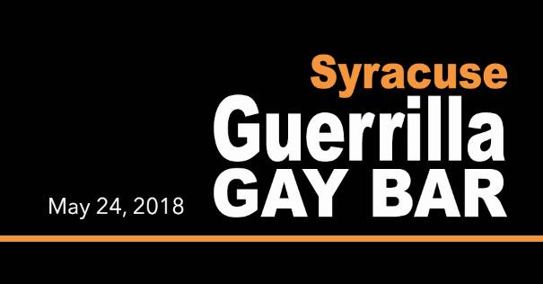 The eighth monthly Syracuse Guerrilla Gay Bar will be on THURSDAY May 24 at 7pm. The venue is a SECRET and will be announced at 2pm on the day of the event.